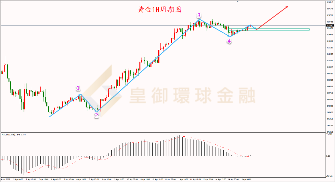 从1H周期走势结构看,黄金自2955.0附近上涨,高点抬高,低点抬高,走出了明显的多头趋势,目前的震荡整理可看作第四波调整行情,后市较大概率还有第五波上涨走势。结合指标来看,MACD指标DIFF线与DEA线处于零轴上方,表明黄金短线多头偏强。综合以上分析,日内可在短线支撑3212.0附近尝试多单。